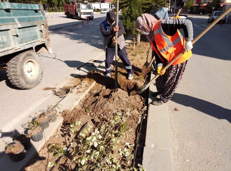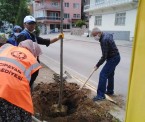 Acıpayam Belediyesi birim müdürleri ortak Cumhuriyet Meydanında bulunan orta refüjlere ıhlamur ağaçları dikti.