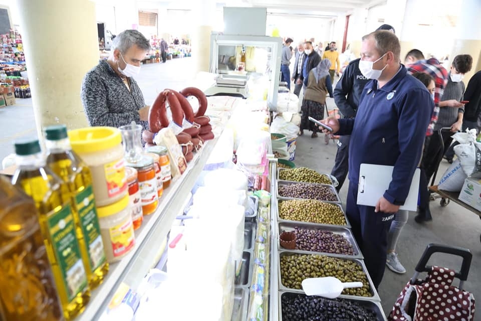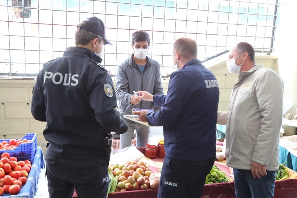 Koronavirüs uyarılarının yapıldığı esnaftan maske, mesafe ve temizliğe azami dikkat etmeleri istenirken maskesi olmayan esnafa maske dağıtımı gerçekleştirildi. İl ve İlçe Hıfzıssıhha Kurulu'nun almış olduğu karar uyarınca ilçe genelinde açılan bütün pazar yerlerinde HES kodu sorgulaması gerçekleştirilecek.