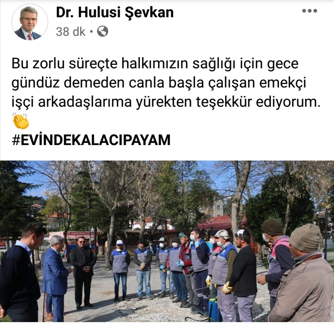 Acıpayam Belediye Başkanı Dr. Hulusi Şevkan, Coronavirüs nedeniyle ilçe merkezi ve mahallelerde çalışmalarını büyük bir titizlikle sürdüren çalışma arkadaşlarına teşekkür etti.
