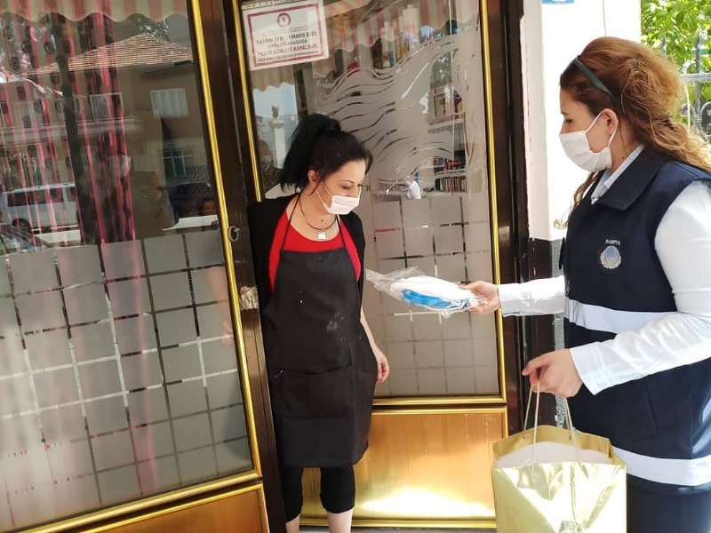 BELEDİYEDEN KUAFÖR VE BERBERLERE MASKE ve YÜZ SİPERLİĞİ DESTEĞİ