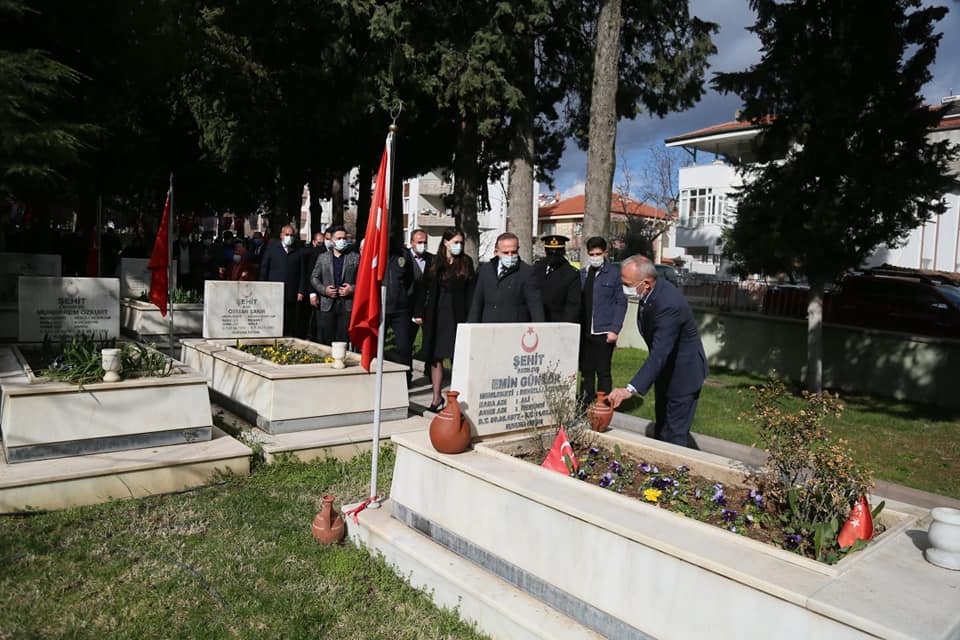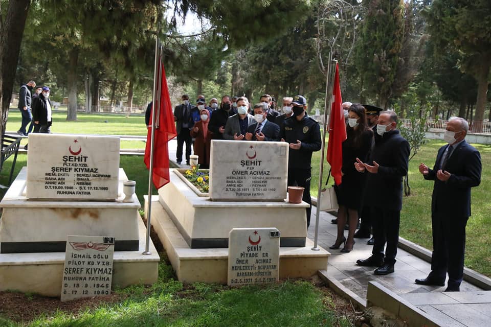 Şehitliğe çelenklerin konulmasının ardından şehitlerimiz için saygı duruşu ve istiklal marşı okundu.Okunan dualar şehitlere gönderildi ve tören kıtası şehitler anısına üç el saygı atışı yaptı.