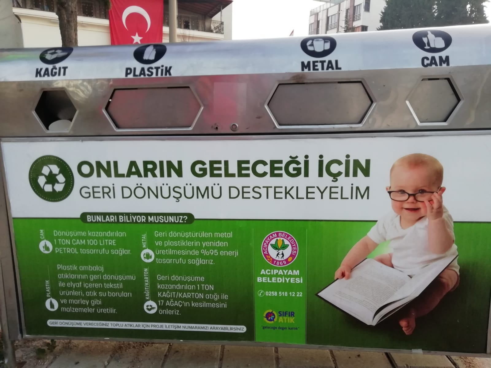 Acıpayam Belediye Başkanı Dr. Hulusi Şevkan , geri dönüşüme katkı sağlamak amacıyla metal, cam, plastik ve kağıt atıklarının ayrı toplanması için geri dönüşüm çöp kutuları yerleştirdiklerini belirtti.