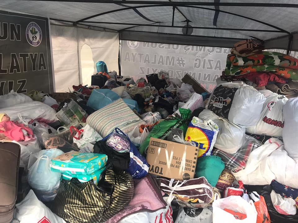 Acıpayam Cumhuriyet Meydanında kurulan yardım çadırına kışlık giyecek, ayakkabı, bebek bezi ve battaniye gibi ihtiyaçlar toplanmaya başlandı.
