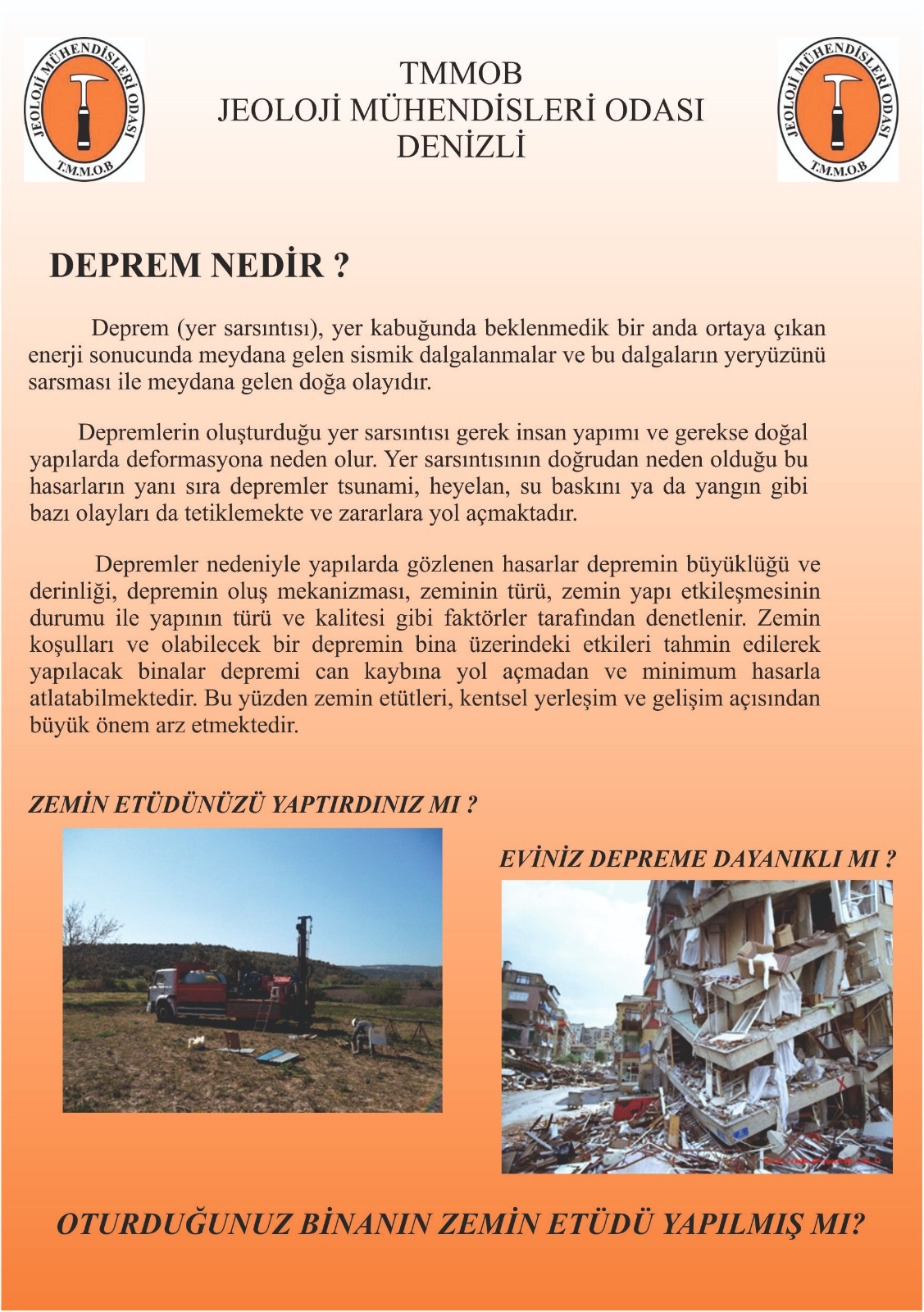 Acıpayam Belediyesi ve Denizli Jeoloji Mühendisleri Odası işbirliği ile ‘’Deprem ve Acıpayam’’ konulu deprem eğitimi verildi.