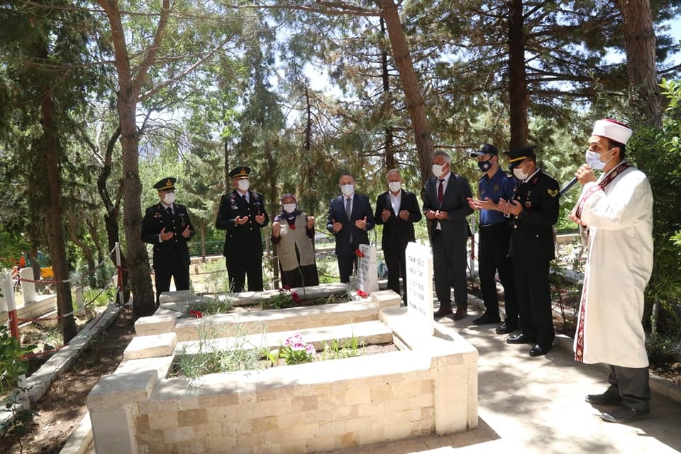 Şehitlik mertebesine ulaşmasının yıldönümünde şehit Jandarma Er Şeref Tay'ın evinin ziyaretinin ardından, Dodurga mahallesinde bulunan şehitliğinde dualar edilerek, karanfiller bırakıldı.