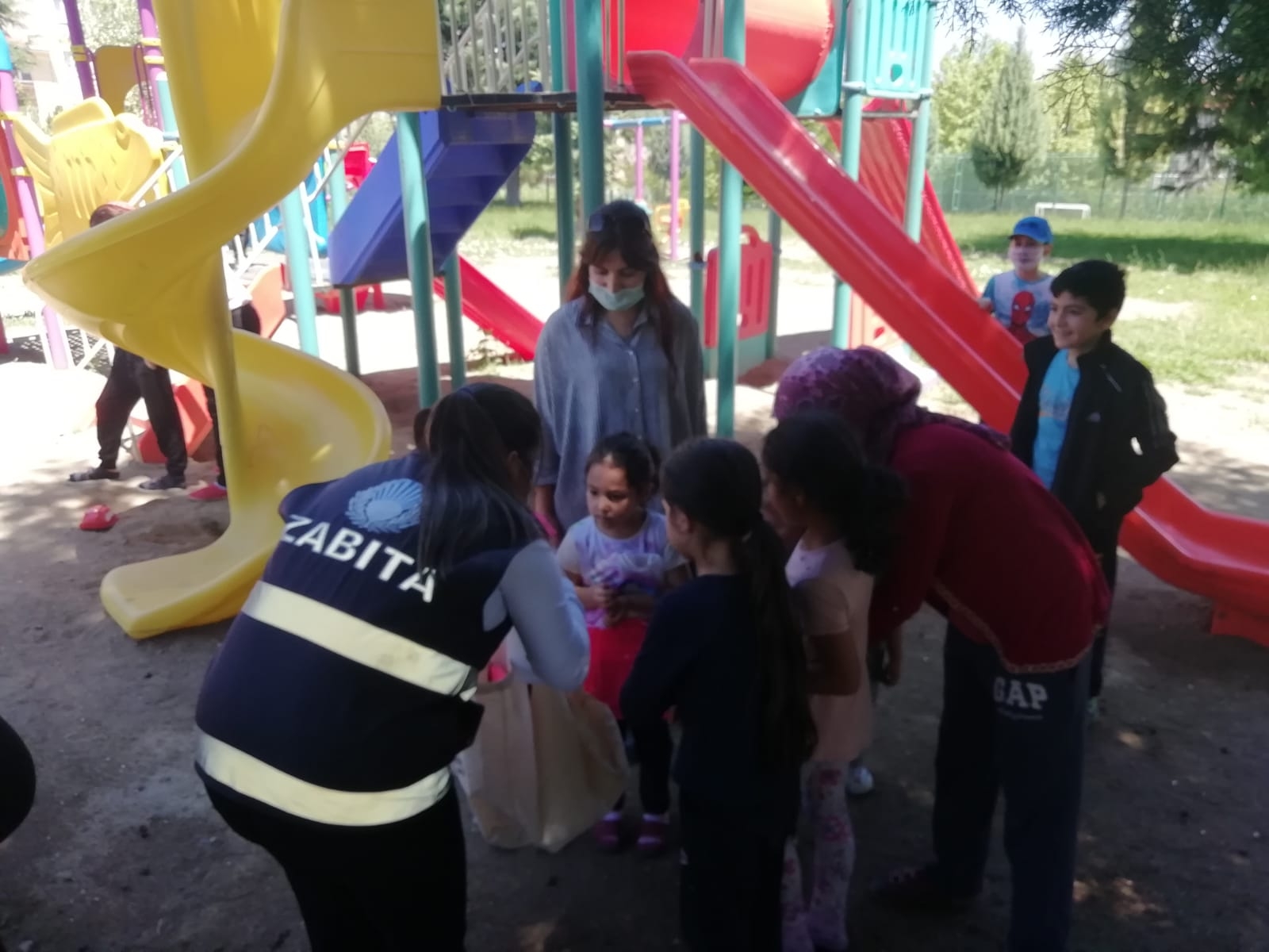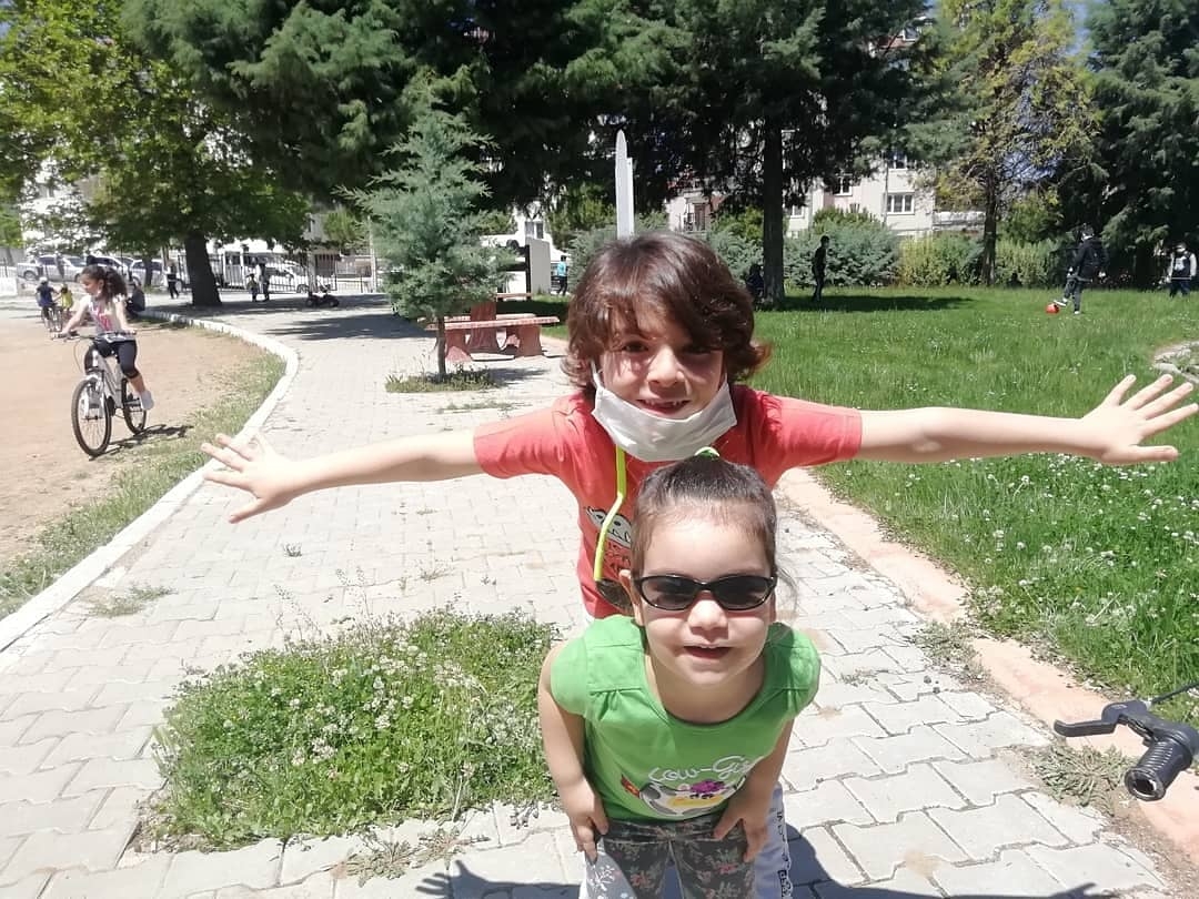 0-14 yaş grubu çocuklar kimileri parkta oyun oynarken, kimileri de yürüyüş yaptı. Çocukların maske taktığı ve sosyal mesafe kuralına uyduğu görüldü.