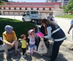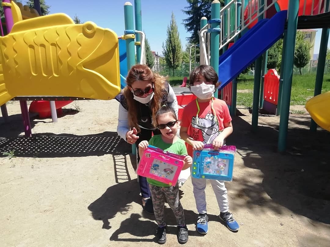 Çocuklara çeşitli hediyeler veren Şevkan, mutluluklarına ortak olmak istediklerini kaydetti.