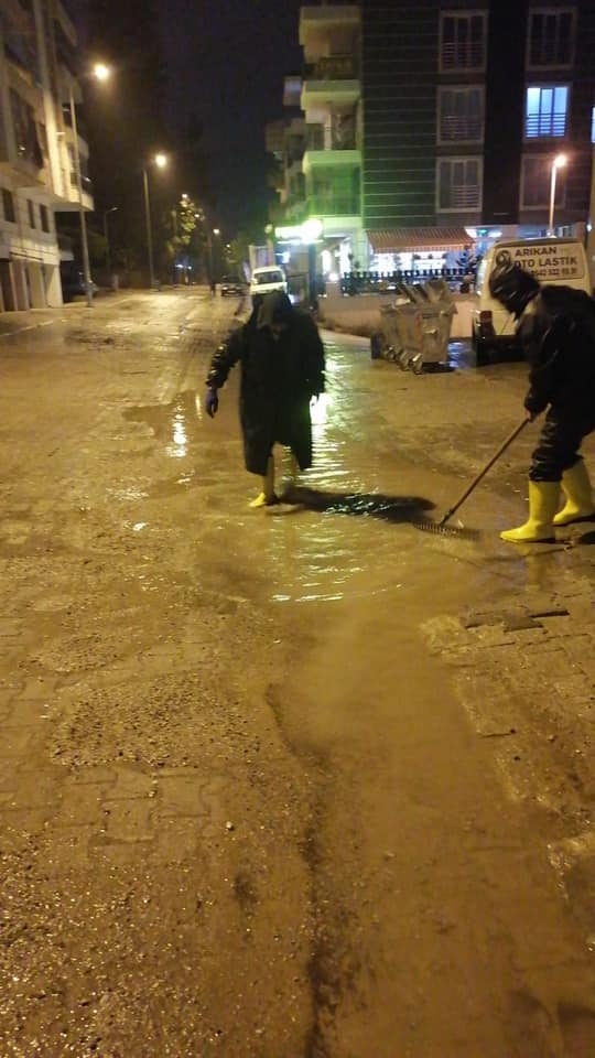 Yaşanan sel nedeniyle mahalle merkezinde bulunan Acıpayam Belediyesine ait iş makinaları gerekli müdahaleleri erken yaparak olası daha büyük bir felaketi önledi. Acıpayam Belediye ekipleri gece geç saatlare kadar çalışmalarını sürdürürken, ilçe merkezinde de çalışmalar devam etti.