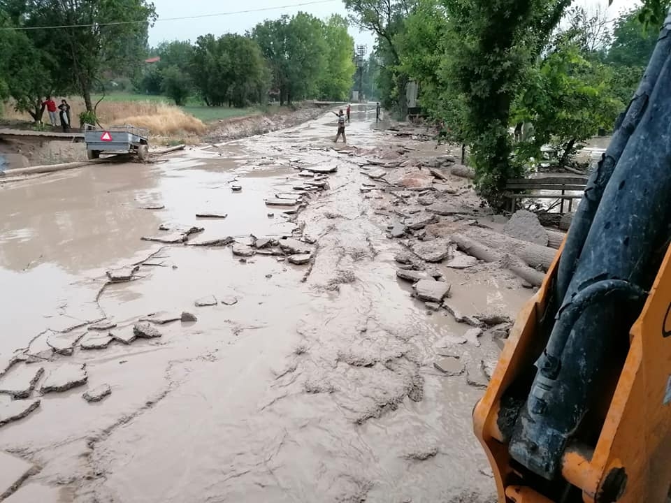 Tarım arazilerine zarar veren sel, yollardaki asfaltları yerinden söktü. Mahallenin içinden geçen Hacıosmanlar Deresinin taşması sonucu oluşan selin yaralarını sarmak için ekipler seferber oldu.