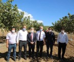 Yetkililer 300 dekar ceviz bulunan Koztepe Çiftlik sahibi Mehmet Manisalı'dan bilgi aldı.