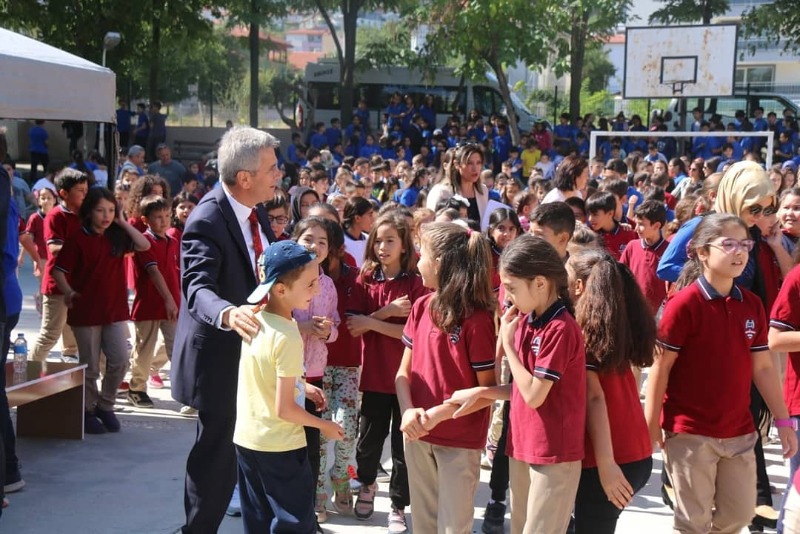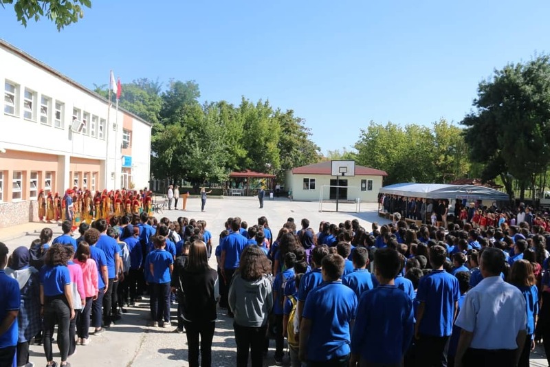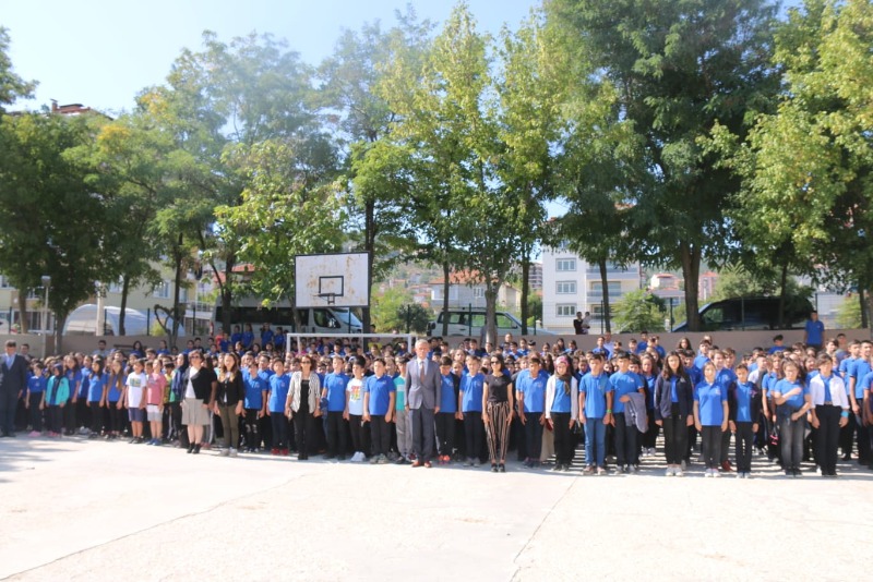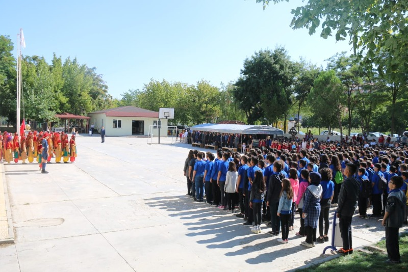 Saygı duruşu ve İstiklal Marşı'nın ardından protokol üyeleri, idareci, öğretmen ve öğrencilerimiz Cumhuriyet İlkokulunda hazırlanan kutlama programına geçtiler.