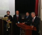 Konferans sonunda konuşmacı arkeolog Uğur Can Uludağ'a Acıpayam Kaymakamı Ali Şanlıer çiçek, Acıpayam Belediye Başkanı Dr. Hulusi Şevkan ve Atatürkçü Düşünce Derneği Başkanı Ömer Alev kitap takdim etti.