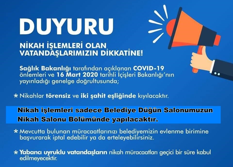 NİKAH İŞLEMLERİ OLAN VATANDAŞLARIMIZIN DİKKATİNE...!