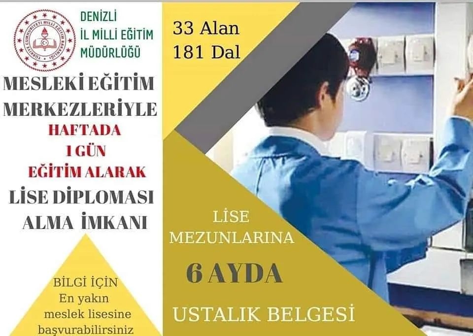 Acıpayam da MESLEKİ BELGESİ olmayan çalışan kalmasın. KAYIT İÇİN MESLEK LİSELERİNE BAŞVURUNUZ.