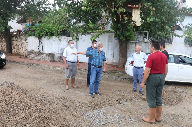 Acıpayam Belediye Başkanı Dr.Hulusi Şevkan, Başkan Yardımcısı Hüseyin Erdem, Birim müdürleri ve DSİ İnşaat Mühendisi Ethem Erenler ile birlikte yağışın etkili olduğu bölgelerde incelemelerde bulundu.