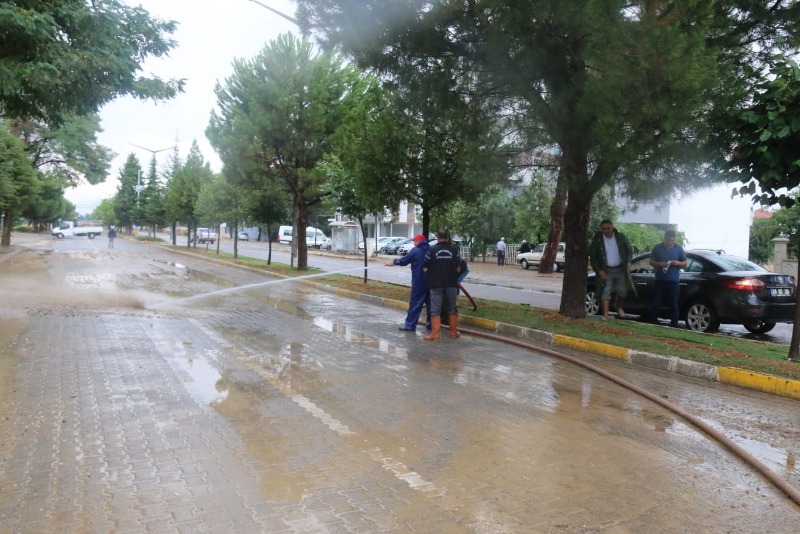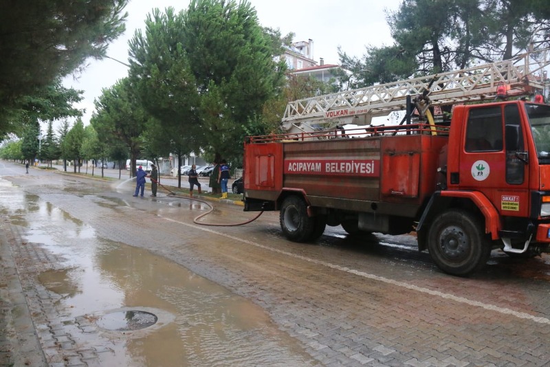 Acıpayam Belediyesi ekipleri sel sularını tahliye etmek için yoğun çaba sarf etti.Öte yandan aşırı sağanak yağış bazı tarım arazisinde ekili mahsüllerde zarara neden oldu.