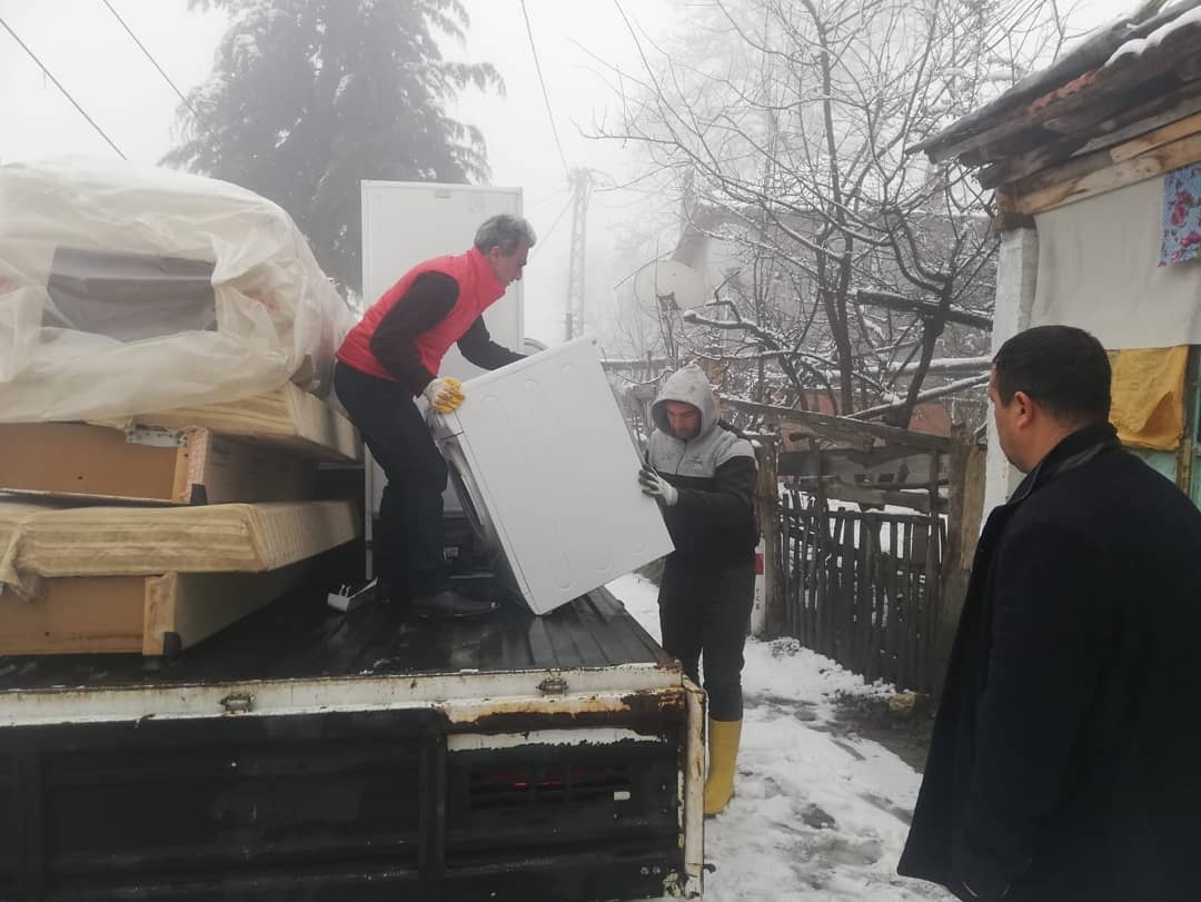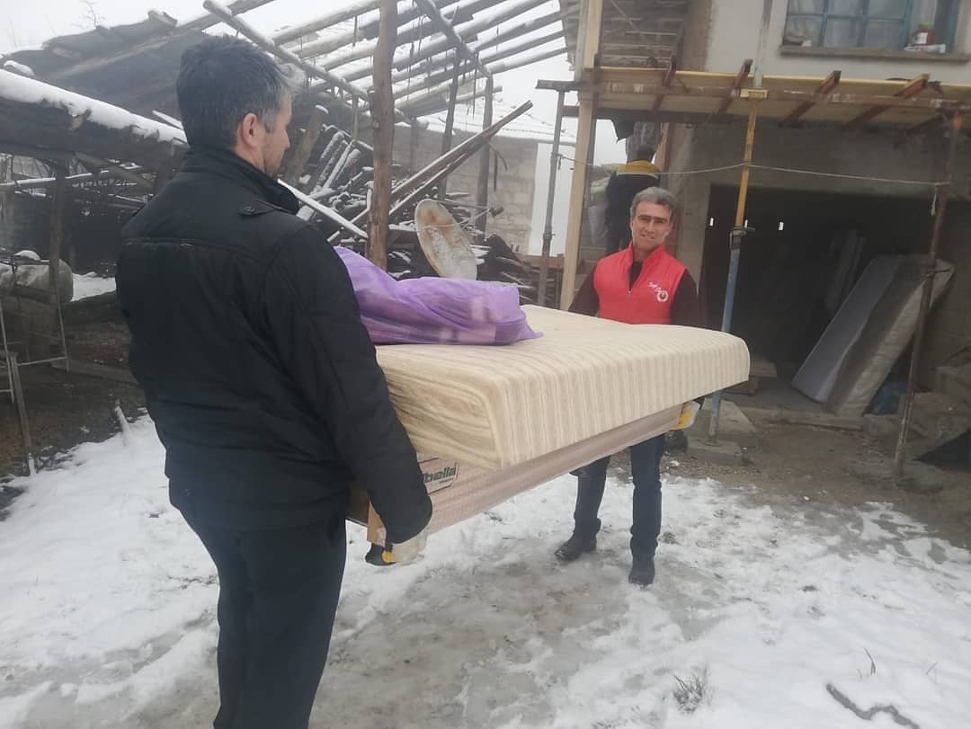 Soğuk kış gününde meydana gelen ev yanıgınında ev kullanılamaz hale gelirken eşyalarda zarar görmüştü.Sevgi eli ekibi mağdur olan aileye kısa sürede ulaşarak yardımına koştu.