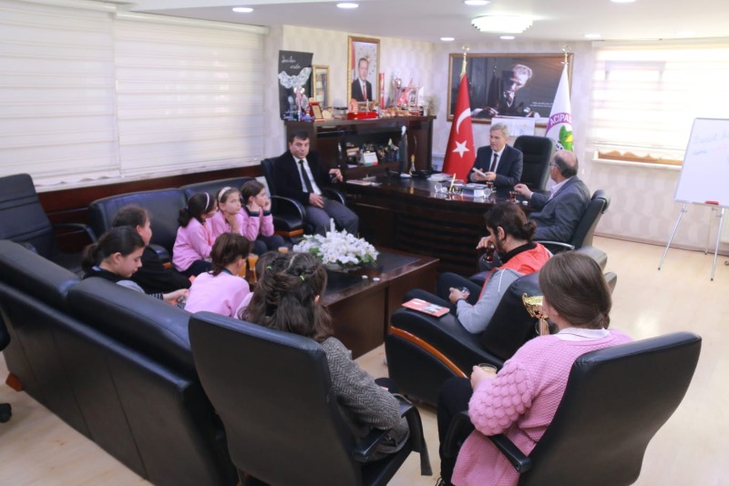 Başkan Şevkan, öğrenciler ve öğretmenleri kutlayarak, onlara İdeal Öğretmen kitabı hediye etti.