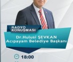Acıpayam Belediye Başkanımız Dr. Hulusi Şevkan, bugün Saat 18'de Radyo Gurbetci Fm'de canlı yayın konuğu oluyor.